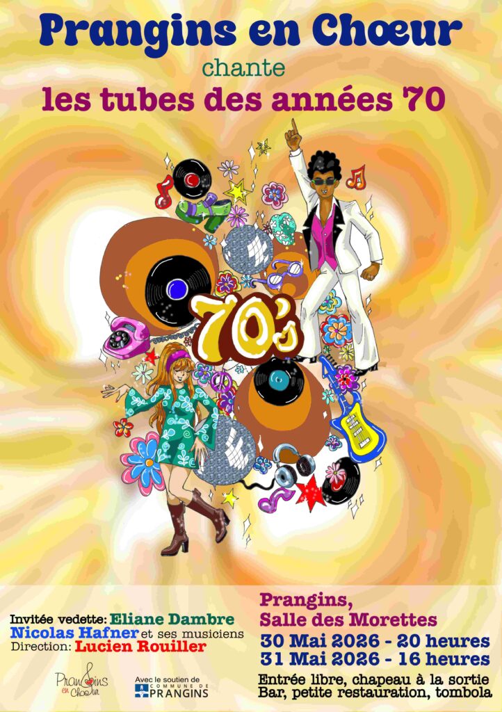 Cette année, notre chorale vous entraîne dans un tourbillon de bonne humeur ! Cap sur les années 70, cette décennie où la musique faisait vibrer les cœurs et bouger les pieds. Préparez-vous à chanter à tue-tête les refrains mythiques, à taper dans vos mains et à sourire sans retenue. Un programme 100 % tubes, majoritairement en français mais aussi venus d’ailleurs, qui vous fera revivre l’énergie joyeuse et colorée de cette époque.